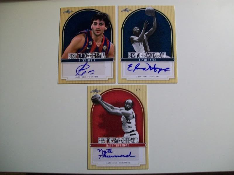Just remember there will only be 6 hits per case - those that dont get a "hit" will be sent a random card to conform with forum rules. If we are lucky to pull an 03-04 Exquisite Collection Basketball sealed box, you would keep your random teams for the box break. Remember the card pulled goes to the team jersey on the card. If there are multiple teams with no majority of teams (51% of more), the card will be randomed to all teams on the card. Since the auto cards do not have NBA teams listed on them, we will go with the longest NBA team they played for. IE Dennis Rodman auto with non-team jersey will go to Pistons since he was with them the longest. We will always default to the team jersey on the card Live case break will be Monday April 9th at 8 p.m. EST http://www.blogtv.com/people/hester72598 Configuration: 3 boxes per case. 1 pack per box. 2 cards per box. 2012 Leaf Best of Basketball will hit stores in late March with what will surely be one of Leaf's strongest buyback releases of all-time. This release features everything that is great about basketball, including: graded rookie cards, slabbed signed buyback rookie cards, graded vintage star cards, graded/authenticated star player autographs and game used cards, vintage packs slabbed authentic and/or factory sealed (including 2003-2004 EXQUISITE BASKETBALL!) and much more... Each box will include: - (1) Graded or Slabbed Authentic Buyback Card - (1) 2012 Leaf Best of Basketball Original Signed Card More product info 2012 Leaf Best Of Basketball | Leaf Trading Cards $859.95 for 3 box case of 2012 Leaf Best of Basketball Hobby Divided by 30 teams $28.67 Direct Slot Cost $ 2.00 to Ship 30.67 Subtotal $ 1.20 Multiplied Paypal Factor (paypal fees are .30 + 2.9%) $31.87 total $32 per spot All payments received Participants 1. hmmdecloth 2. hmmdecloth 3. hmmdecloth 4. zw15 5. Onepercent 6. jt16 7. Onepercent 8. Onepercent 9. csrockerzero 10. rambel 11. b_garett 12. Orangejello727 13. Orangejello727 14. Orangejello727 15. Vintage Collector 16. jt16 17. Vintage Collector 18. Vintage Collector 19. seekupjgill 20. txmike 21. mr_yoshi_san 22. seekupjgill 23. doobypenguin 24. houseofcards 25. greenjdo 26. greenjdo 27. jt16 28. jlzinck 29. padsfan10 30. akarlen hmmdecloth........ Boston Celtics, New York Knicks and Sacramento Kings Orangejello727.... Memphis Grizzlies, San Antonio Spurs and Golden State Warriors Vintage Collector... Cleveland Cavaliers, Washington Wizards, Indiana Pacers and New Orleans Hornets (1/2 ownership interest with jlzinck) jt16..................... Denver Nuggets, Miami Heat and Utah Jazz Onepercent.......... Milwaukee Bucks, Los Angeles Clippers and Chicago Bulls seekupjgill............ Detroit Pistons and Portland Trail Blazers greenjdo............. Toronto Raptors and New Jersey Nets rambel.............. Phoenix Suns b_garett........... Oklahoma City Thunder/Seattle Supersonics txmike.............. Los Angeles Lakers mr_yoshi_san..... Philadelphia 76ers doobypenguin..... Houston Rockets and Orlando Magic houseofcards.......Minnesota Timberwolves jlzinck................ New Orleans Hornets (1/2 ownership interest with Vintage Collector) akarlen.............. Dallas Mavericks zw15................ Atlanta Hawks csrockerzero...... Charlotte Bobcats Ricky Rubio Best of Basketball Auto TIMBERWOLVES Elvin Hayes Best of Basketball Auto WIZARDS Nate Thurmond Best of Basketball Auto #4/5 WARRIORS ![]() Kevin Durant 2007 Topps Chrome Auto (PSA/ DNA Certified) Slabbed THUNDER Derrick Rose 10-11 Ultimate Collection Big Game Signatures Auto #18/75 BGS 8.5 (Auto 10) BULLS Kobe Bryant 10-11 National Treasures Timeline Material Team Nickname Signs Auto #30/30 BGS 8.5 LAKERS ![]() ![]() I found a checklist of the auto cards. Here are my breakdowns based on # of years played in the NBA and which team they go to: Artis Gilmore- BULLS Bailey Howell- PISTONS Bill Russell- CELTICS Bob Hurley Sr.- RANDOM TO ALL Carol Blazehowski- RANDOM TO ALL Cliff Hagan- HAWKS Dan Issel- NUGGETS Dennis Rodman- BULLS (if in Bulls jersey), otherwise PISTONS if non-team jersey Dolph Schayes- 76ERS Earl Lloyd- 76ERS Elvin Hayes- WIZARDS Jerry Sloan- BULLS John Kundla- LAKERS Magic Johnson- LAKERS Marques Haynes- RANDOM TO ALL Marshon Brooks- NETS Meadowlark Lemon- RANDOM TO ALL Moses Malone- ROCKETS Nate Thurmond- WARRIORS Oscar Robertson- BUCKS Rick Barry- WARRIORS Ricky Rubio- TIMBERWOLVES Sam Jones- CELTICS Scottie Pippen- BULLS The Professor- RANDOM TO ALL Tristan Thompson- CAVS Last edited by hester72598; 04-10-2012 at 12:04 AM. Reason: added shipping for all slots per rules |