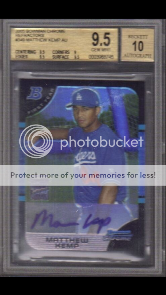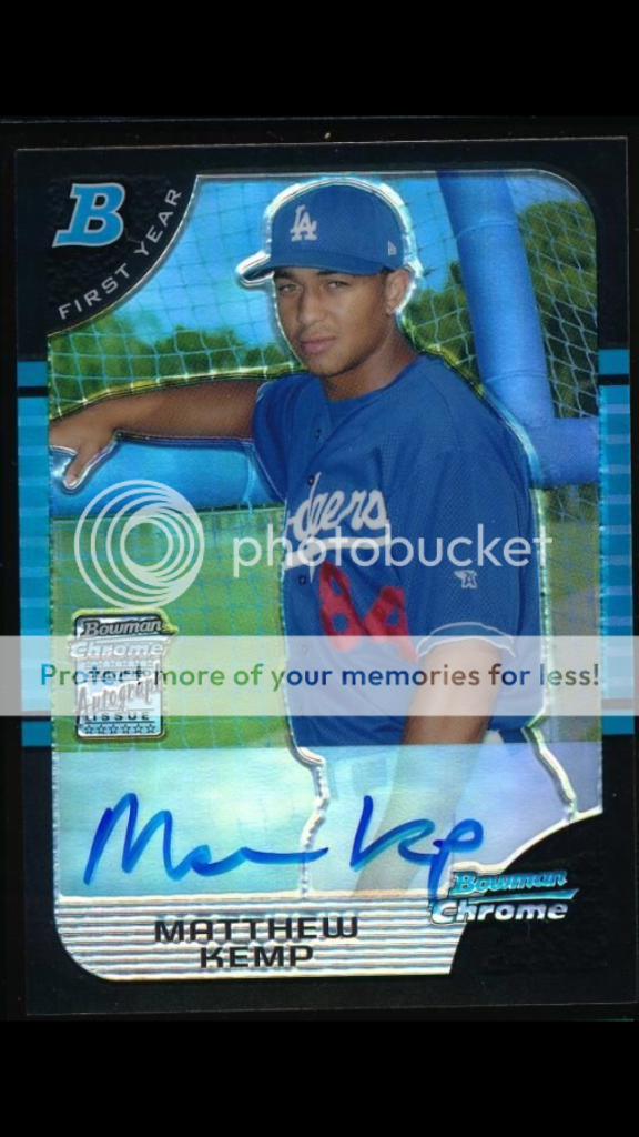 Hey guys. Started collecting Matt Kemp about a year ago.My pc has come along way in the meantime. I know its not the best Kemp collection out there but i take pride in my collection and enjoy collecting.The hobby is extremely expensive now a days which makes me thankful that i was able to build up this collection and am only 14. So enjoy and sorry for the crappy and large pics. Also note that i have a few more cards that i wasnt able to upload.