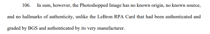 "Plus, the plaintiffs claim they suffered a loss of reputation, shame, mortification, and injury to their respective feelings, and loss of the value of the LeBron Patch Card. They are seeking damages of at least $6 million." just lol.