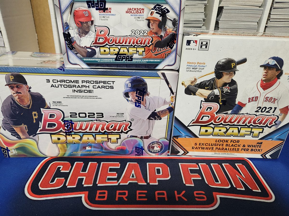 2021 Bowman Draft LITE 2022 Bowman Draft Asia 2023 Bowman Draft Jumbo $194.99 This break is scheduled for when it fills! Payment instructions: 1. Add your username in the box provided before clicking button. 2. Log in to paypal to use your account normally OR stay logged out to use button as guest & use a credit card. 3. MAKE SURE YOUR ADDRESS IS CORRECT. I absolutely MUST ship to the address attached to your payment from paypal. 4. No refunds or returns, sorry. 5. No echecks. In the event of an echeck, it will have to clear in 3-5 days and then be refunded. AL EAST NL EAST AL CENTRAL NL CENTRAL AL WEST NL WEST AL EAST - Blue Jays Orioles Rays Red Sox Yankees NL EAST - Braves Marlins Mets Nationals Phillies AL CENTRAL - Guardians Royals Tigers Twins White Sox NL CENTRAL - Brewers Cardinals Cubs Pirates Reds AL WEST - Angels Astros Athletics Mariners Rangers NL WEST - Diamondbacks Dodgers Giants Padres Rockies
