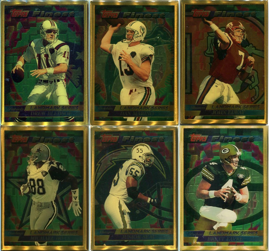 I toyed with the idea of the set, around 2014. On comc there was a Marcus Allen for $21.25. Wouldn’t accept offers. I just had a feeling I’d regret it if I was to pursue the set. I started breaking up my Marino collection in 2016, but couldn’t let go of the MVP Gold, so I decided to go for the set after I won a Favre at auction one drunk night. I also bought a Barry Sanders off eBay that day And scooped everything off comc, but the Marcus Allen was gone. I eventually found everything but Aikman and Marcus Allen. The first Aikman I saw in 2020, and it ended on a best offer very quickly. It was 2 years before another was listed and I made a deal very quickly. It was pricey, but lower price and better condition than the one that just ended for $405. Over the years, I bought doubles and upgraded my sets condition while making money too. Eventually I met someone who was also only missing Marcus Allen. When one finally popped up I put a crazy bid in to finish the set. I won it for almost $500,which was almost $800 less than my high bid. My main reasoning of going so hard on it was because, with the gains in 90s inserts, the next time I see one these may have exploded more. The other was with my flips and everything directly involving the set, I owned 18 of the 20 cards for nothing, and what I paid for aikman and allen are what I owned the set for. So even if it was $1600 for those two, I was sitting pretty on the set. So I guess the Marino was a long hunt for me. But the Aikman proved most elusive. And Marcus Allen took the longest to acquire due to my inability to commit. In stopping and thinking about this though, the Jerry Rice is one that doesn’t show often. I fortunately bought mine off a member on Beckett for $30 in 2017. I don’t recall seeing any at live auction. Bledsoe and Alstott and Bettis all trip people up on this set as well. Pretty sure Eddie George’s growing popularity will make this a key item over time.