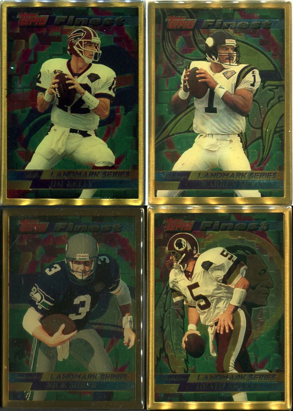 This thread is destined to become one of my all time favorite. I was a major insert set builder back in the day but have sold off the majority of them over the past year. I still have most of the Playoff Quad sets from 1995-2000 (I'll post a couple later), and several auto sets that I will dip into as well.