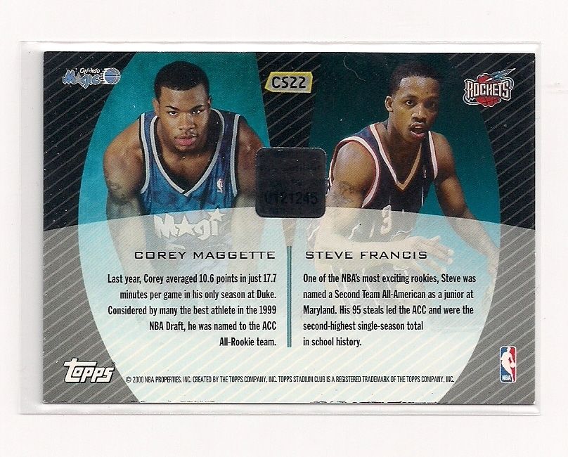 got 14 1999-00 stadium club never compromise packs and 11 1999-00 stadium club chrome packs. for a grand total of about $16 dlvd. I thought why not. the stadium club chrome yielded very little a jalen rose refractor and a clear shots Elton brand insert, nonetheless a fun break. the stadium club packs were fun and pulled several inserts as well as a steve nash one of a kind /150 and this card, I can only imagine how much this would have sold for back then, but still so cool to hit, I imagine ill just keep it. odds were 1:550 packs ![]()