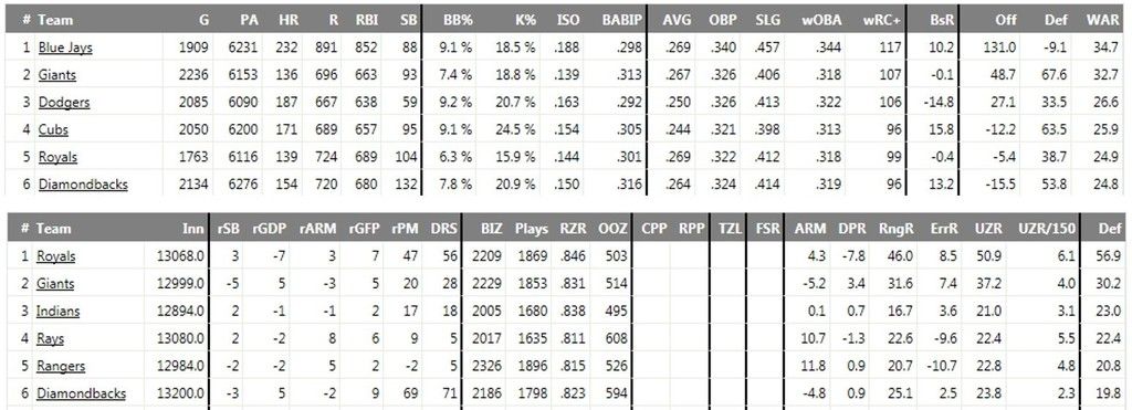 I also don't get all the talk about the DBacks having the best offense and defense. This is what I'm tracking, and consider all the injuries that the Giants lineup suffered. ![]() Greinke will no doubt have a regression and Miller was quite average if that in the second half. So we will have to see how their season plays out.
