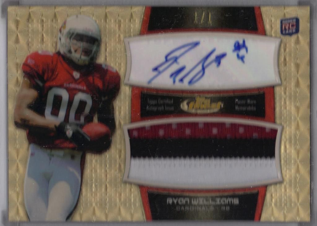 Tyrod Taylor by CharlotteHokie | Photobucket Maybe this one: ![]() or this one: ![]() Gone down the most.......any of my Ryan Williams. NFL Uniforms Ryan Williams by CharlotteHokie | Photobucket Virginia Tech Uniforms Ryan Williams by CharlotteHokie | Photobucket Have several 1/1s. Maybe this one: ![]() or this: ![]()