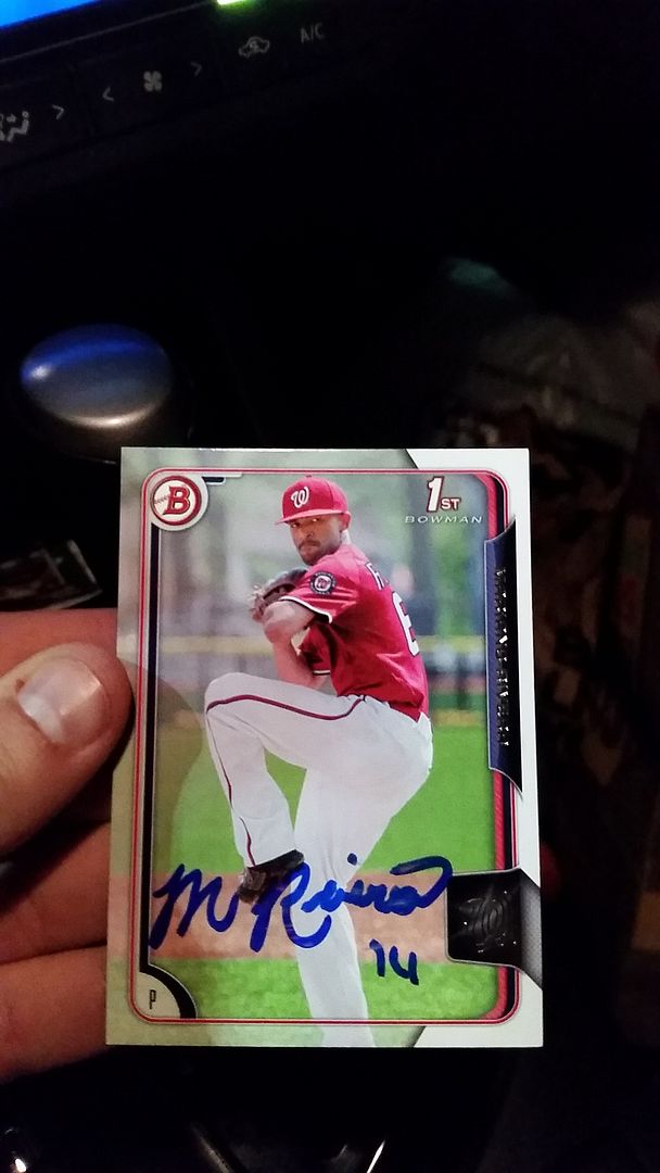 Ended up with 2 Brendan Rodgers. Nice kid, got absolutely mobbed by the bus but handled it like a champ. I have a feeling he's gonna be burnt out before too long though.. ![]() ![]() Mariano Rivera III.. seems like a really down to earth kid. Very cool guy. ![]() And stories like this are what make IP graphing great.. When you feel like you strike gold.. Mariano was in attendance and security kept things on lock down all night apparently. I waited by the side door I figured he'd come out after leaving his suite and he did. I was the only one in the area at the time and said Mr. Rivera could I please have your autograph? And the staff girl with him was like nope!!! Sorry! He had about 4 staff members and a policeman escorting him out. They take him out the back of the stadium and get in a van. I decide to go to my car by the front of the stadium to possibly beat him to the hotel. About the time I'm about to get in my car, I see the van stop just across the way from where I was and he gets out and gets in his personal car. Luckily only me and 2 kids saw him at the time so it wasn't a mob scene. He was nice enough to roll down and signed for all 3 of us! Awesome experience.. Got pretty lucky. To my knowledge those were the only 3 he signed all night.