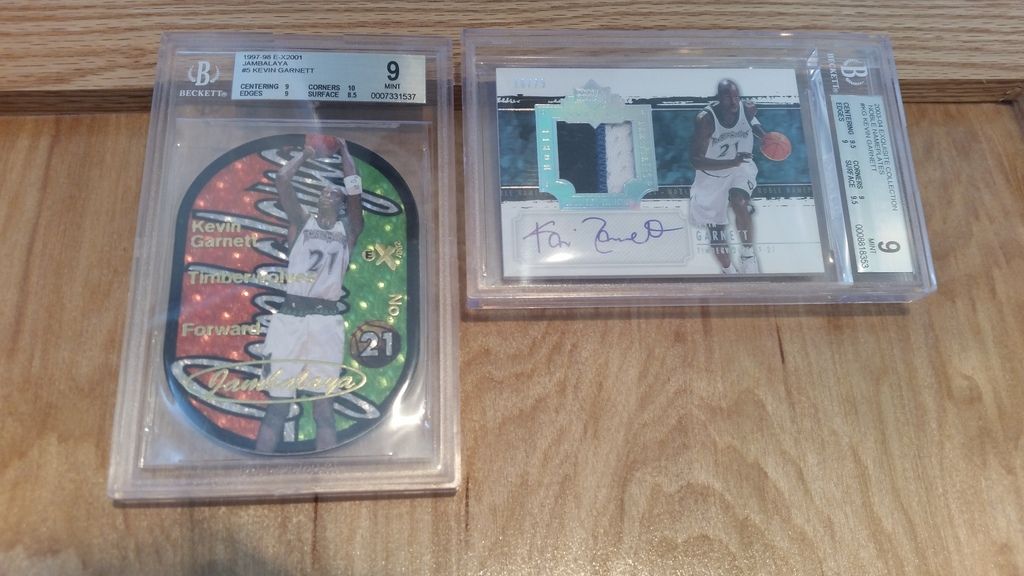 07'08 Bowman Draft Picks & Stars 1 Patch & Dual Jersey #/25 (I pulled this way back when the product was live @ my LCS just buying random packs that day. Even when I pulled it I was in disbelief because I'd never pulled a patch card out of Bowman!) ![]() 07'08 Bowman Sterling Kevin Garnett Black Refractor Jersey Card #/99 (I know it's just a jersey card but I like how the black parallel meshes with the white and green Celtics colors to make it pop. Nice portrait shot of KG in his new team uniform too. And it's a refractor.) ![]() 09'10 SP Game Used 3-Star Swatches Kevin Garnett, Paul Pierce & Ray Allen #/35 (Gold Parallel) (Cool triple jersey of "The Big Three".) ![]() 09'10 SP Game Used Chris Bosh, Kevin Garnett, Joakim Noah & Danilo Gallinari "Multi Marks - Quad" #/50 (This is from my Knicks PC. It was my first KG auto and Noah auto too, I believe. Funny how he's a Knick now.) ![]() 08'09 Exquisite Kevin Garnett and Paul Pierce "Inscriptions" Dual Auto #/10 (And this card was a replacement for several way outstanding redemptions from UD. It's #/10. It's too bad they didn't inscribe anything. Like imagine if they had inscribed their nicknames? That would've looked so cool.)