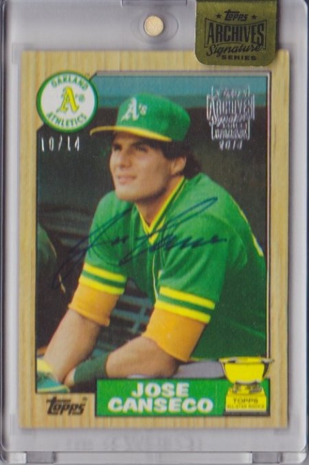 I had a few favorites of the time in Eric Davis, Jesse Barfield, Ryne Sandberg, and most of all Canseco.. When the reprint autos became popular in 2001 with Archives and Donruss recollections, it opened up the possibility of owning autos of the stars I watched on at worst, a reprint of an 80s card, at best an actual rookie card. Eventually Archives became a staple, Recollections came and went and came back with Panini, Topps added Fan Favorites, Originals and the recent Archives Signature Series, and even Leaf came out with 2013 Memories autos. There's no Harper's, or Trout's or Correa's, but I hope the fans of 1980s baseball enjoy. So, here we go. Hope the pics show ok. Mattingly 2001 Archives Sandberg 2001 Archives (one of my favorites since I watched a ton of Cubs games on WGN) ![]() More a star of the 70s than the 80s but whatever. Bench 2001 Team Topps Legends Gwynn 2002 Diamond Kings Recllections ![]() Bo 2002 Archives ![]() Kirby 2002 Archives (one of my favorite cards) ![]() Mr Beane 2004 Fan Favorites. Definitely not a star of the 80s but I thought it was a a cool card. ![]() Barfield 2004 Originals ![]() Hit King 2013 Leaf Memories (took me a while to find one of Pete) ![]() Clemens 2013 Leaf Memories RC ![]() Canseco 2013 Leaf Memories ![]() Will Clark 2013 Archives ![]() 2014 Recollections Autographs was a good release for me. McGriff RC ![]() Canseco RC ![]() Joe Carter RC ![]() Boggs RC ![]() Eric Davis RC ![]() Gooden RC ![]() Canseco 2014 Archives ![]() And we will finish off with 2015 Archives Signature Series Strawberry ![]() Canseco ![]() Not an 80s card, but its Canseco so that's good enough for me ![]() There's still a ton of guys to go for (Trammell, Dale Murphy, Brett, Yount, Whittaker, Schmidt etc etc etc comes to mind), but in due time. |