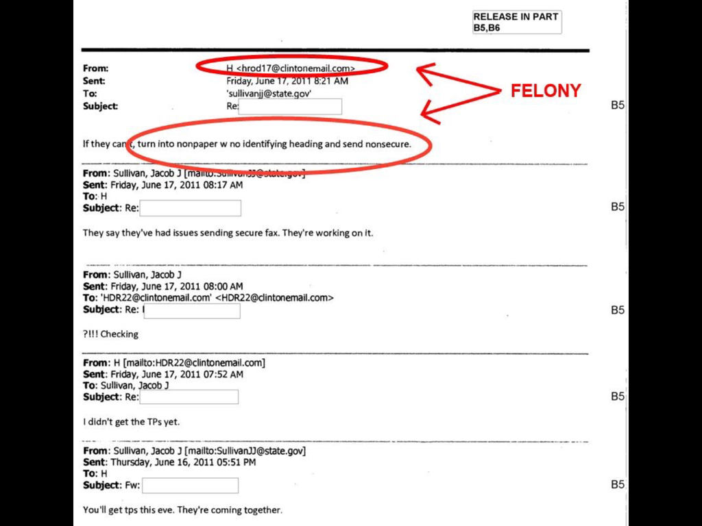 Talking points. You see the red marks on the right side that say "Felony". Well that's some idiot who thinks Hillary Clinton has committed a crime by asking someone to send talking points in a non-secure manner. It's not.