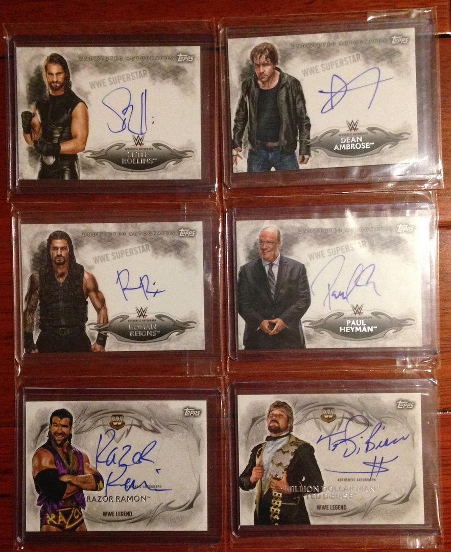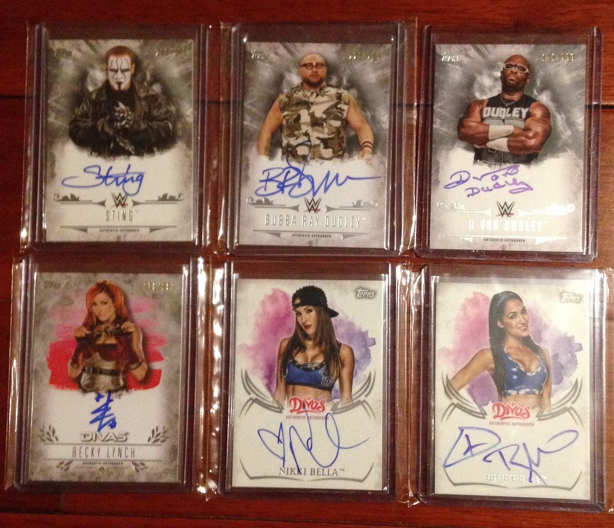 Sting 203/299 - $SOLD Bubba 223/299 - $SOLD Devon 121/299 - $SOLD Becky Lynch 236/299 - $SOLD Nikki & Brie Bella - $SOLD ![]() Seth Rollins - $SOLD Dean Ambrose - $SOLD Roman Reigns - $SOLD Paul Heyman - $SOLD Million Dollar Man - $SOLD Razor Ramon - $SOLD ![]() AJ Styles 62/199 - $SOLD Goldust 212/299 - $SOLD Jerry Lawler - $SOLD Hulk Hogan mat auto 7/50 - $100 Mick Foley relic auto 15/15 - $50 ![]() Daniel Bryan - $17 CM Punk (still sealed in original cellophane) - $SOLD Brock Lesnar - $SOLD Big Show - $SOLD
