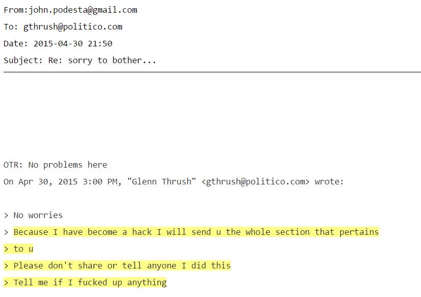 I understand what you're saying and why you see it that way. I'm not even saying you're wrong. I've just yet to see any PROOF of anything claimed. You say that these leaks are exposing corruption. You don't have to answer this but just how does: -$1M gift from Qatar to Bill expose corruption? -"journalists from politco" expose corruption? -NYT expose corruption? -Bloomberg giving stories ahead of time to the DNC and asking for their permission, even asking them if anything should be edited before publication expose corruption? That's what I'm asking. Every time myself, or someone else just simply asks, we're met with: -"then you'll never be satisfied w/ the evidence" -"A lot of heads buried in the sand." Those are just 2 of the last 5 posts. All I've asked is someone to use the emails and connect the dots. I forget who did it earlier (I think TKE) but someone posted a long-winded theory about backroom arms dealing in the Middle East as the reason for the alleged cover-up regarding Benghazi. While it's based completely on speculation, at least dots were connected, a story was laid out, and a coherent thought was formulated. That's been rare in this thread, and around the internet. It doesn't have to be you Chapmans, but I'm asking someone to show me ONE THING, just one, that without a shadow of a doubt "exposes corruption" in those emails. ONE smoking gun. The way some of you have been going on about these Wikileaks dumps being the penultimate in Hillary Clinton's undoing I would have hoped to see at least one substantiated claim come out of these emails, I just haven't seen it yet. Someone connect some dots. Last edited by GeechQuest; 10-18-2016 at 10:54 AM. |