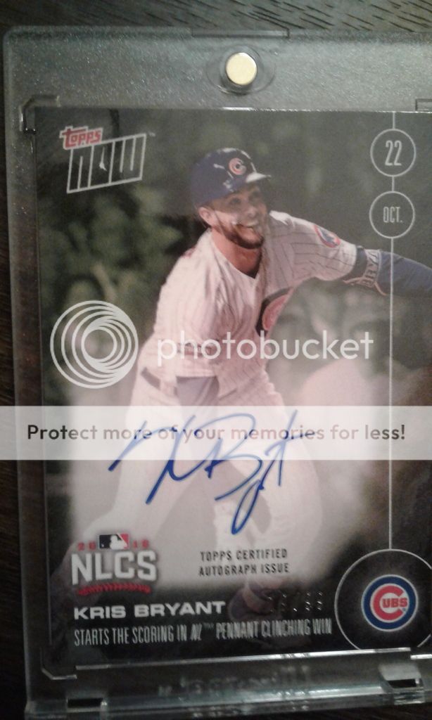 Hi everyone. I posted in the "welcome" board, but thought I'd just say hi to everyone on this thread as well. I really got into Topps Now over the last few months and was a lurker on this board for a long time before ultimately deciding to join the board soley so I could participate in this thread. Reading this thread has been highly enjoyable as I am a huge fan of the Cubs and have enjoyed chasing after all of the relics and base cards over the last few months. My wallet is hurting right now, but man, has it been fun collecting these cards!