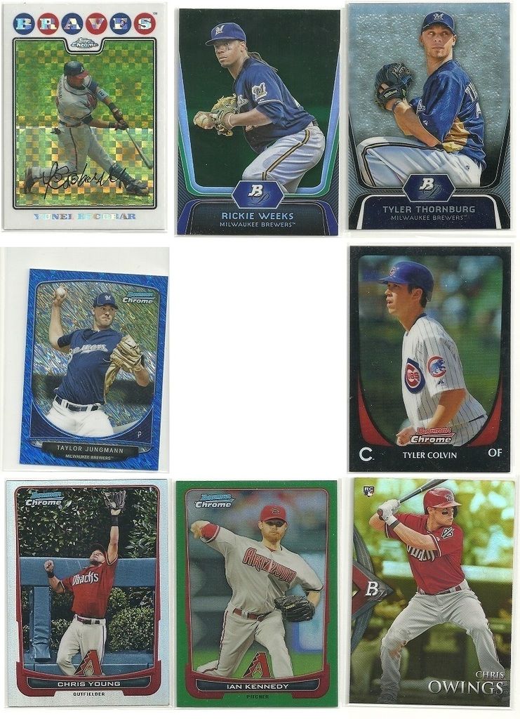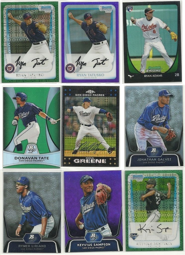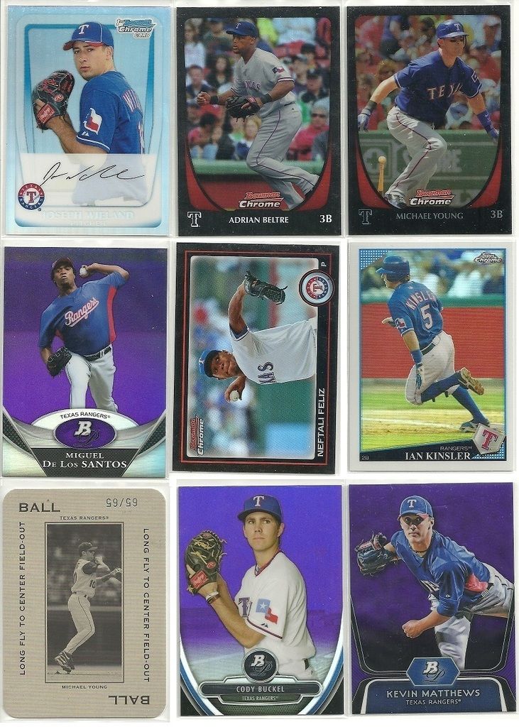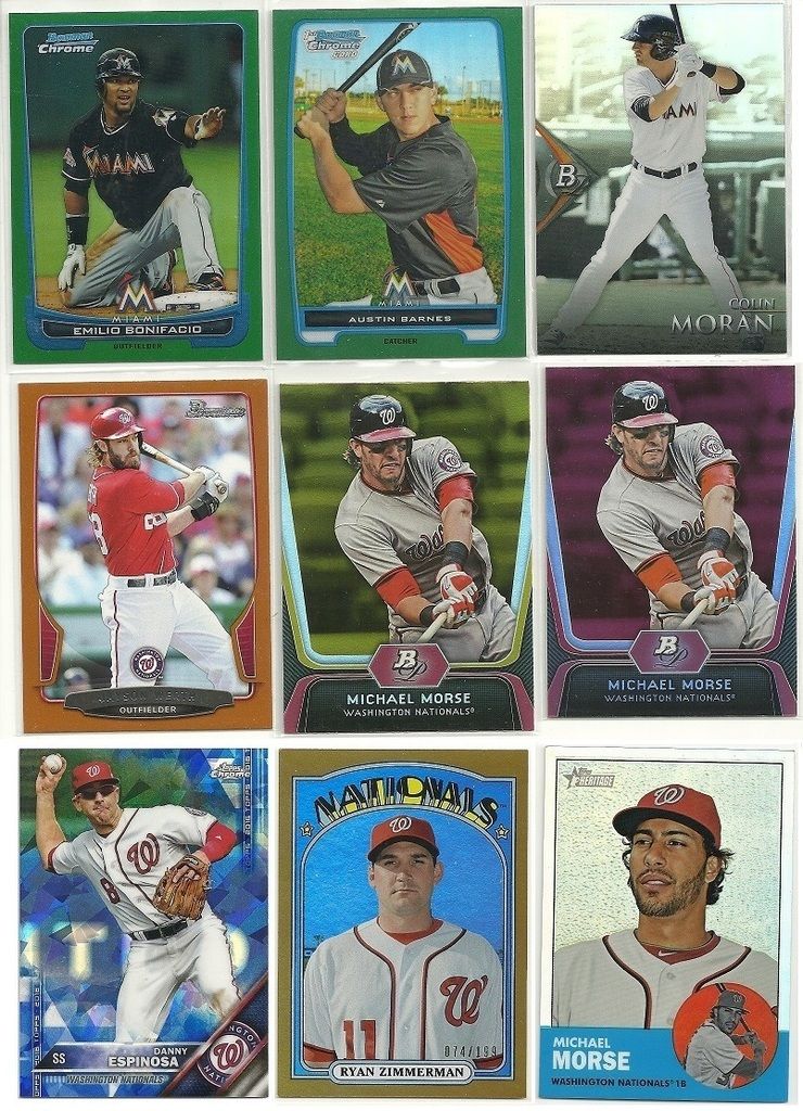 Shipping 1-2 cards: $1.00 PWE 3-10 cards: $3.00 10+ will be calculated accordingly EVERYTHING BELOW IS $0.25 EACH UNLESS NOTED TAKE EVERYTHING (minus stars at bottom) FOR $25.00 DLVD ![]() Choice Green Refractor: $0.50 Chavez Blue: $2.00 ![]() Bautista: $1.00 ![]() Jungmann Mini Blue Refractor: $0.50 ![]() Upton Heritage Chrome: $0.50 Bonds HR History: $0.50 each Sandoval: $1.00 ![]() Belle: $0.50 ![]() Espinosa: $1.00 Zimmerman: $1.00 Morse Refractor: $1.00 ![]() Sampson X-Fractor: $0.50 ![]() ![]() Michael Young: $1.50 ![]() ![]() Perez Gold: $0.75 ![]() Escobar Blue: $2.00 Molina Blue: $0.75 Dickerson Refractor: $0.50 O'Brien Purple Refractor: $0.50 Cards below are priced as listed ![]() 1998 Topps Mystery Finest Borderless Refractor #M16 - $6.00 1999 Pacific Paramount Personal Bests #7 - SOLD 1998 Upper Deck Unparalleled #8 - SOLD 1999 Skybox Thunder Rant #285 - $2.00 1998 Upper Deck Collector's Choice Starquest Double #SQ3 - $6.00 1998 Pacific Omega Red #34 - $6.00 1995 Score Rules #SR18 - $6.00 1997 Score Heart of the Order #12 - SOLD ![]() 2002 Fleer Tradition SP #2 - $6.00 (x2) 2006 Topps Rookie of the Week #14 - $0.50 each 2000 Fleer Tradition Ripken Collection #6 - $1.00 2000 Fleer Tradition Ripken Collection #7 - $1.00 2000 Fleer Tradition Ripken Collection #9 - $1.00 2000 Fleer Tradition Ripken Collection #10 - $1.00 2000 Skybox Dominion Eye on October #EO11 - $1.00 ![]() (x2) 1990 Bowman RC #320 - $1.00 each 1990 Score RC #663 - $1.00 (x2) 1990 Topps RC #414 - $1.00 each 1993 Score The Franchise #4 - $0.50 1995 SP Championship Series Die-Cut #140 - $0.50 1997 Upper Deck Collector's Choice Big Shots Gold Signature #10 - $4.00 1997 Upper Deck Collector's Choice Toast of the Town #T11 - $2.00 ![]() 1997 Donruss Franchise Features w/Darin Erstad #2 #'d 2183/3000 - $3.00 1997 Donruss Power Alley #1 #'d 0387/1000 - $15.00 1997 Donruss Rocket Launchers #1 #'d 4076/5000 - $2.00 1997 Donruss Rocket Launchers #1 #'d 4666/5000 - SOLD 1997 Fleer Team Leaders #4 - $2.00 1997 Leaf 22 Karat Gold Leaf Stars #1 #'d 1601/2500 - $8.00 1997 Leaf Fractal Matrix X-Axis Die-Cut #369 - $10.00 1997 Pinnacle X-Press Far & Away #3 - $1.00 1998 Pacific Omega Prism #4 - $2.00 ![]() 2006 Topps Opening Day Red Foil #45 #'d 0817/2006 - $2.00 2002 Fleer Diamond Standouts #DS8 #'d 0930/1200 - $2.50 1999 Fleer Tradition Diamond Magic #DM10 - $2.00 (x2) 1999 Fleer Tradition Golden Memories #GM8 - $1.50 each 1999 Topps All-Topps Mystery Finest #M33 - $1.50 1998 Topps Mystery Finest Bordered #M12 - $1.50 1997 Leaf Dress For Success #1 #'d 2382/3500 - $5.00 1997 Pinnacle Passport to the Majors #1 - $5.00 ![]() 2004 Fleer Tradition Career Tributes #CT2 #'d 1173/1993 - $5.00 1995 Upper Deck Collector's Choice Gold Signature #52 - $8.00 1994 Fleer Golden Moments #7 - $0.50 1993 Upper Deck Then & Now #TN5 - $0.50 ![]() 1999 Fleer Tradition Diamond Magic #DM8 - $2.00 1999 Skybox Thunder Hip-No-Tized #H6 - $2.00 1999 Fleer Sports Illustrated Diamond Dominators #DD3 - $2.00 1998 Ultra Gold Medallion Edition #217G - $0.50 1998 Upper Deck Amazing Greats /2000 #AG26 - $4.00 1996 Score All-Stars #11 - $2.00 1995 Donruss Press Proof /2000 #18 - $3.00 ![]() 1998 Pacific Paramount Team Checklists #14 - $1.00 1998 Ultra #492 - $0.50 1997 Donruss Dominators #11 - $1.50 1999 Upper Deck Crowning Glory w/Kerry Wood #CG1 - $0.50 1998 Donruss Dominators #1 - $2.00 1999 Pacific Team Checklist #14 - $1.00 (x3) 2002 Fleer Tradition SP #68 - $1.00 each ![]() 2003 Fleer Tradition Standouts #NA - $3.00 1999 Topps All-Matrix #AM25 - $0.50 2003 Fleer Tradition Black & White Goudey #9 #'d 1488/1936 - $2.00 1995 Topps Finest #185 - $0.50 1993 Score Select Aces #1 - $1.00 1995 SP Championship Series Die-Cut #122 - $0.50 1994 Fleer Smoke 'n Heat #1 - $1.00 1991 Fleer All-Star Team #10 - $0.50 1997 Leaf Die-Cut Fractal Matrix #40 - $5.00