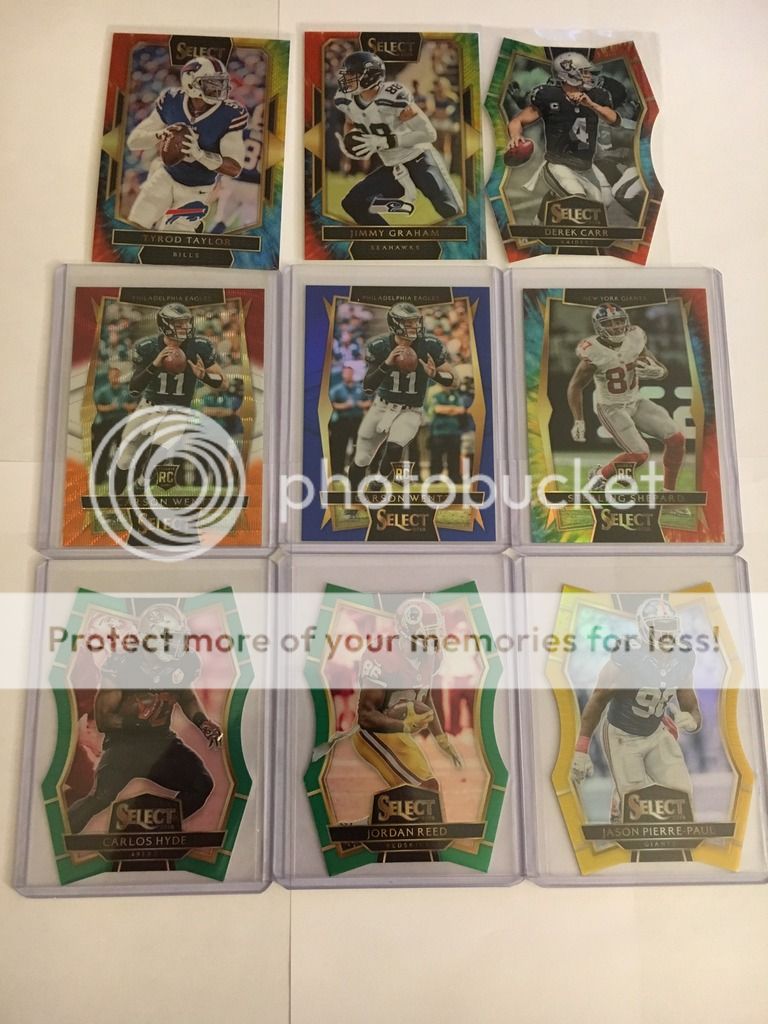 2016 Panini Select Football Hobby 12 Box Case : Blowout Cards - Sports Cards and Trading Cards Wholesale Online Store I am very thankful to blowout for allowing us to do these types of breaks as they are my favorite. As a thank you I will try to do some kind of giveaway with each one of the PYT break I do. I will be giving away 1 Hobby Box of 2016 Classics Football to one lucky member, done via random. Paypal fees (2.9% plus $.30), Supplies $2.00, and Shipping ($4.00 up to 2 teams Any amount of teams after the 1st is $6.50 Priority Shipping Bubble Mailer) are extra. I will send everyone their totals after we are full. I will combine shipping on multiple teams. - You can purchase a team by claiming in the thread. Only teams purchased in the thread will count. There is NO claiming teams via PM. - Once all teams are full we will be moved to active at which time you will receive payment totals from me and will have 24-48 hours to pay. - All multi team cards will go to majority ownership. If no one owns the majority it will be randomized. - Cases are ordered the same day that payments are due and the break will occur the next evening. - The host may purchase a spot in the break, however I will not do so until everyone has had some time to pick up their teams and will only do so in an effort to help fill the break. Ustream Link - Teams and Cost (Teams in RED are claimed) Arizona Cardinals - $15 - jtheels99 Atlanta Falcons - $15 - ackuhl22 Baltimore Ravens - $30 - hester72598 Buffalo Bills - $25 - ackuhl22 Carolina Panthers - $25 - Kmm1116 Chicago Bears - $65 - dallasstars29 Cincinnati Bengals - $30 - matt4486 Cleveland Browns - $35 - jtheels99 Dallas Cowboys - $375 - SamAxe51 Denver Broncos - $60 - deansayso Detroit Lions - $25 - hester72598 Green Bay Packers - $55 - ackuhl22 Houston Texans - $45 - meandsharon11 Indianapolis Colts - $25 - 51CardDeck Jacksonville Jaguars - $25 - SnkzBoyd Kansas City Chiefs - $60 - 51CardDeck Los Angeles Rams - $65 - dallasstars29 Miami Dolphins - $50 - Dolphan44 Minnesota Vikings - $40 - nordy22 New England Patriots - $65 - dallasstars29 New Orleans Saints - $40 - ackuhl22 New York Giants - $60 - tsdst5 New York Jets - $20 - ackuhl22 Oakland Raiders - $50 - jtheels99 Philadelphia Eagles - $150 - FunDragon Pittsburgh Steelers - $50 - matt4486 San Diego Chargers - $60 - Haigo San Francisco 49ers - $35 - 51CardDeck Seattle Seahawks - $55 - Kmm1116 Tampa Bay Buccaneers - $25 - cinnakaok Tennessee Titans - $60 - SamAxe51 Washington Redskins - $30 - ackuhl22 All XRC Redemption Cards - $200 - 51CardDeck Payment Totals All XRC Redemption Cards - $200 - 51CardDeck Indianapolis Colts - $25 - 51CardDeck San Francisco 49ers - $35 - 51CardDeck Kansas City Chiefs - $60 - 51CardDeck Total = $344.81 Washington Redskins - $30 - ackuhl22 Buffalo Bills - $25 - ackuhl22 New York Jets - $20 - ackuhl22 New Orleans Saints - $40 - ackuhl22 Atlanta Falcons - $15 - ackuhl22 Green Bay Packers - $55 - ackuhl22 Total = $209.89 Tampa Bay Buccaneers - $25 – cinnakaok Total = $32.24 New England Patriots - $65 - dallasstars29 Los Angeles Rams - $65 - dallasstars29 Chicago Bears - $65 - dallasstars29 Total = $214.00 Denver Broncos - $60 – deansayso Total = $68.29 Miami Dolphins - $50 - Dolphan44 Total = $57.99 Philadelphia Eagles - $150 – FunDragon Total = $160.97 San Diego Chargers - $60 – Haigo Total = $68.29 Detroit Lions - $25 - hester72598 Baltimore Ravens - $30 - hester72598 Total = $65.20 Arizona Cardinals - $15 - jtheels99 Oakland Raiders - $50 - jtheels99 Cleveland Browns - $35 - jtheels99 Total = $116.18 Seattle Seahawks - $55 - Kmm1116 Carolina Panthers - $25 - Kmm1116 Total = $90.95 Cincinnati Bengals - $30 - matt4486 Pittsburgh Steelers - $50 - matt4486 Houston Texans - $45 - meandsharon11 Total = $52.84 Minnesota Vikings - $40 - nordy22 Total = $47.69 Dallas Cowboys - $375 - SamAxe51 Tennessee Titans - $60 - SamAxe51 Total = $456.54 Jacksonville Jaguars - $25 – SnkzBoyd Total = $32.24 New York Giants - $60 - tsdst5 Total = $68.29