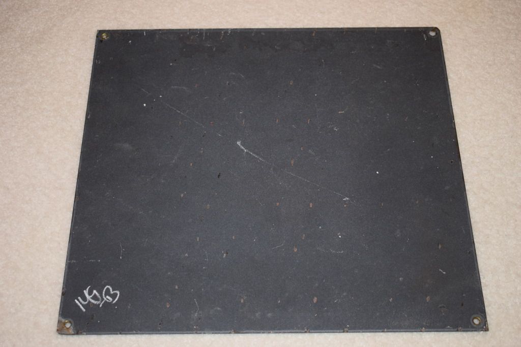 Got this today for $1.49. Not sure if it's actually old or some kind of reproduction. It's heavy, strong metal - magnets stick to it. It's somewhere around 14 inches by 18 inches with no markings on the back. The words and designs on the front are slightly raised. It's beat up but I thought it was neat.