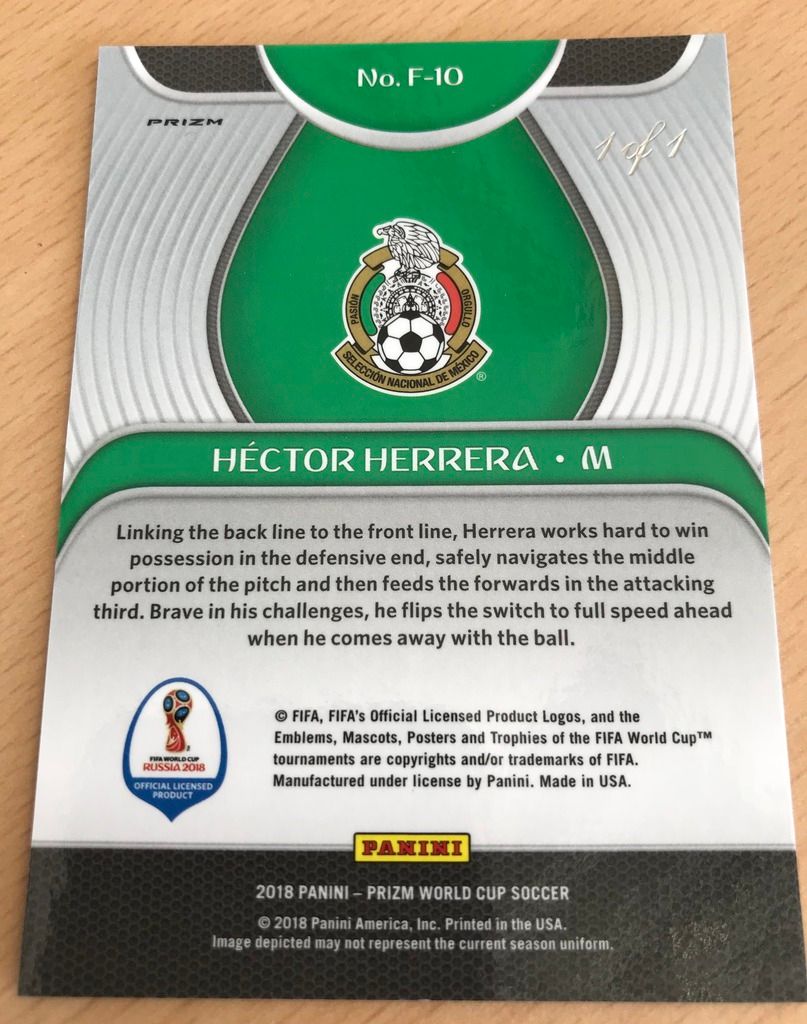 Inserts Base - New Era: Thomas Lemar, Breel Embolo - Connections: Eriksen/Bendtner, Alli/Rashford - Scorers Club: Salah, Berg, Perez - Fundamentals: Mascherano PRIZMS - Fundamentals Silver: Kasper Schmeichel - Silver Base: Kouyate, Heechan, Moreno, Kalinic, Alioui, Otamendi, Gamboa - Hyper Base: Fernando Muslera - Mojo Base: Varane, Bendtner, Maaloul - Green/Orange Wave Base: Pogba, de Bruyne - Red Base 034/149: Jonas Hector - Purple Base 37/99: Christian Eriksen Box Hit - Black Prizm Fundamentals 1/1: Hector Herrera, Mexico ![]() ![]()