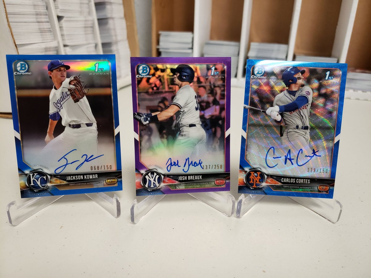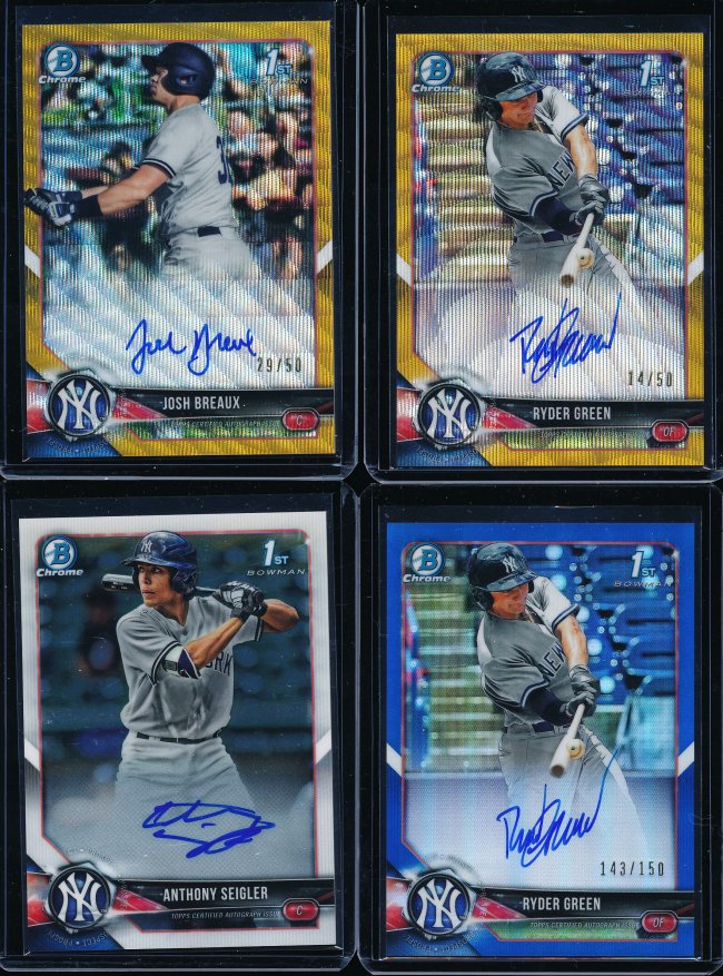 Anthony Seigler Autos Base = 5 Josh Breaux Autos Base = 3 Purple = 2 Ryder Green Autos Base = 2 10 base autos and 2 color autos On to the next one. I just have Ryder Green in the 24 caser for auto but have all 3 for chrome spots.