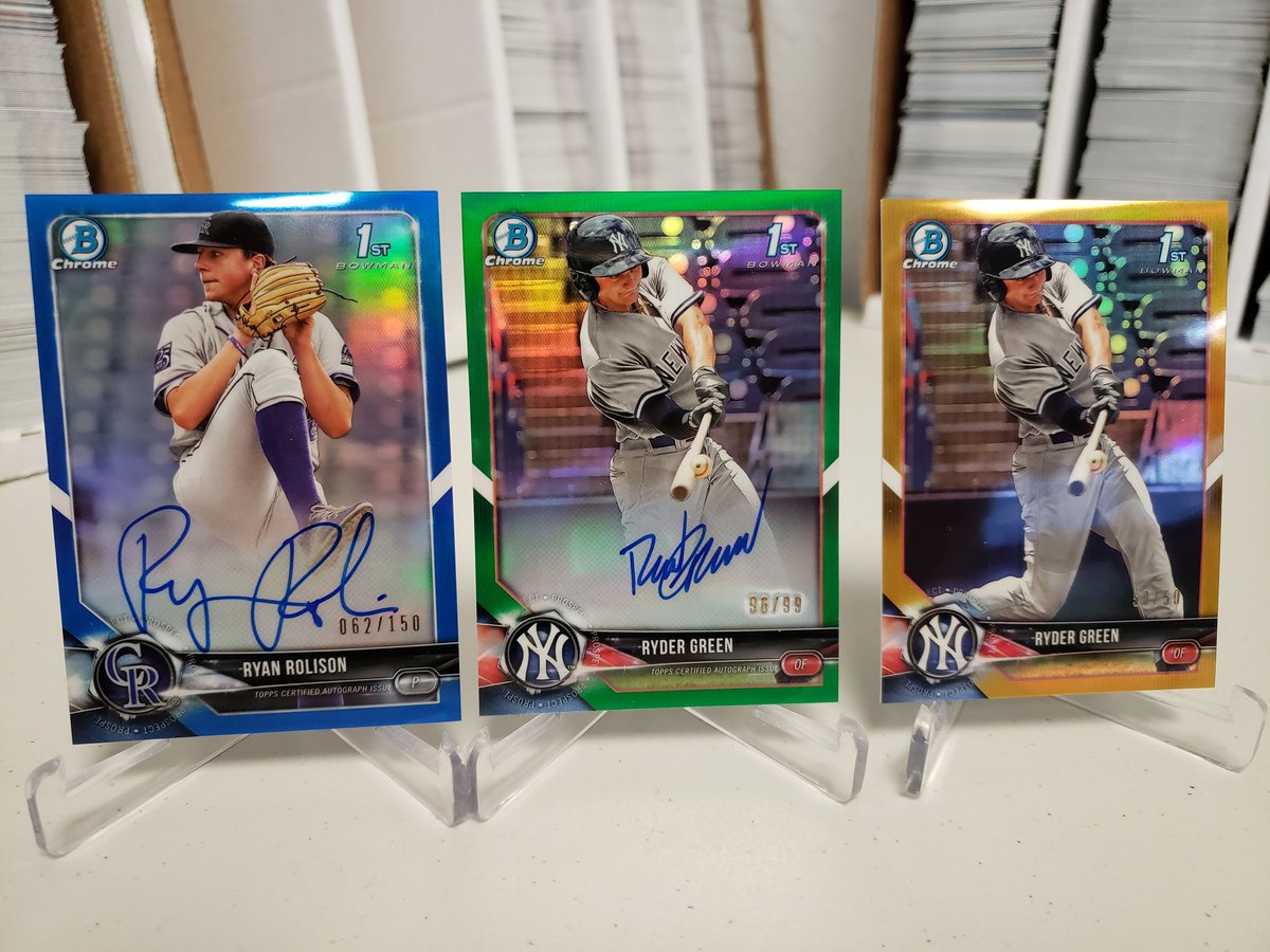 **Only listing Blue or better for chrome spots. OP doc will be updated with all colors once in hand.** CDA-RG Ryder Green BDC-57 Josh Breaux BDC-65 Anthony Seigler BDC-84 Ryder Green Case #1 No auto Case #2 Ryder Green - base auto Case #3 Anthony Seigler - blue non auto Case #4 No auto Case #5 No auto Case #6 Ryder Green - base auto Case #7 Ryder Green - base auto Case #8 No auto Case #9 No auto Case #10 Ryder Green - gold non auto Ryder green - green auto Case #11 No auto Case #12 No auto Case #13 No auto Case #14 Ryder Green - base auto Case #15 Ryder Green - base auto Case #16 Ryder Green - base auto Case #17 No auto Case #18 No auto Case #19 No auto Case #20 Josh Breaux - blue non-auto Ryder Green - base auto Case #21 No auto Case #22 No auto Case #23 No auto Case #24 Ryder Green - base auto Ryder Green Autos Base = 8 Green = 1 Ryder Green Color Chrome Gold = 1 Anthony Seigler Color Chrome Blue = 1 Josh Breaux Color Chrome Blue = 1