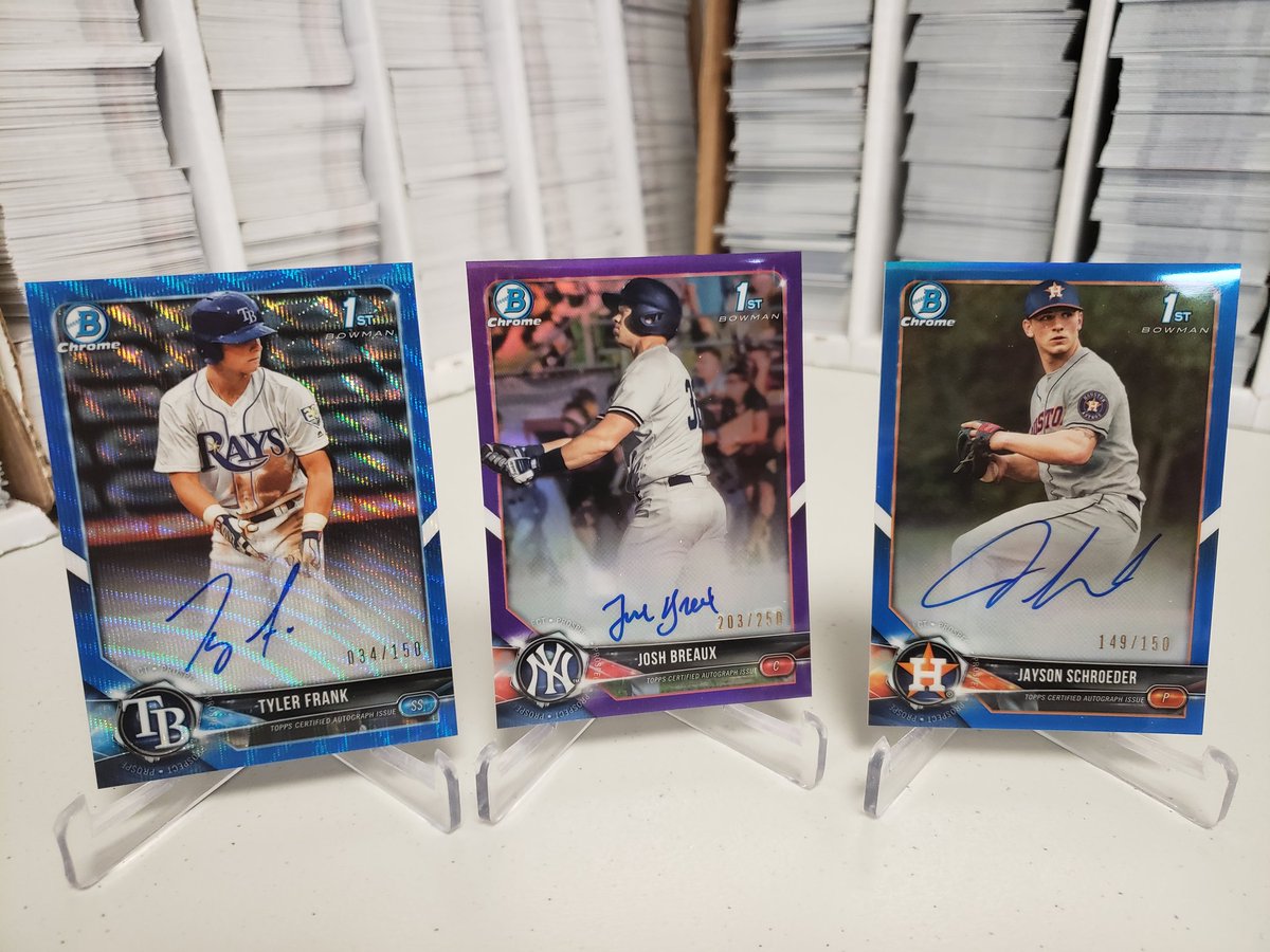 Breakdown below For Houdini breaks: **Only listing Blue or better for chrome spots. OP doc will be updated with all colors once in hand.** David does a full recap so able to list all chrome colors. David 20 caser: Anthony Seigler Color Chrome Sky Blue = 1 Blue = 1 Purple = 1 Sparkle = 1 Josh Breaux Color Chrome Sky Blue = 2 Ryder Green Color Chrome Blue = 1 Green = 1 Houdini 12 caser: Anthony Seigler Autos Base = 5 Anthony Seigler Color Chrome Green = 1 Josh Breaux Autos Base = 3 Purple = 2 Ryder Green Autos Base = 2 Houdini 24 caser: Ryder Green Autos Base = 8 Green = 1 Ryder Green Color Chrome Gold = 1 Anthony Seigler Color Chrome Blue = 1 Josh Breaux Color Chrome Blue = 1 OP has a spreadsheet that I will officially update as soon as I have cards in hand and can tally them up for you all to see.
