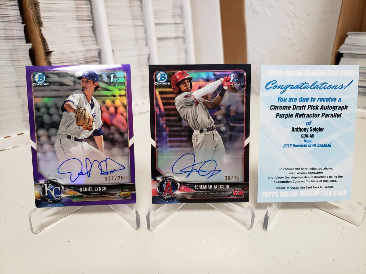 ***************UPDATE********************** 36 cases are now officially broken. Below are all autos and Blue or better chrome non-auto results for my 2 guys: Anthony Seigler Autos Base auto = 12 Refractor auto = 2 Purple auto = 1 Blue wave auto = 1 Green auto = 1 Anthony Seigler Color Chrome Blue = 2 Gold = 1 Orange =1 Superfractor = 1 ![]() ![]() ![]() ![]() ![]() ![]() Ryder Green Autos Base auto = 9 Refractor auto = 2 Purple auto = 3 Green auto = 1 Ryder Green Color Chrome Blue = 1 Gold = 1 Next up is 50 caser and I own the following spots: CDA-AS Anthony Seigler - Cases 26-50 ONLY (1-25 were sold) CDA-RG Ryder Green - 50 cases BDC-84 Ryder Green - 50 cases After these 50, we have the last 10 cases and I own the following spots: CDA-AS Anthony Seigler - 10 cases CDA-RG Ryder Green - 10 cases BDC-65 Anthony Seigler - 10 cases BDC-84 Ryder Green - 10 cases