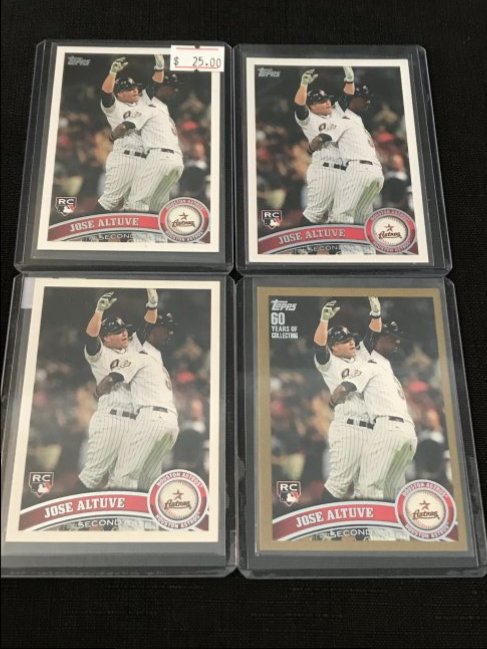 Just a couple from the past few days. First off are 4 Altuve RCs- 2 base, 1 missing logo/foil, and 1 gold /2011. I haven't really been too into star RCs, honestly, but I got these at a nice price and couldn't pass them up. Not sure what I'll do with them yet, I wouldn't mind starting to build a decent side PC of rookies of top tier guys, but at this point at least, it's hard for me to justify spending so much on that when the money could be put towards pretty nice Twins cards. But we'll see!