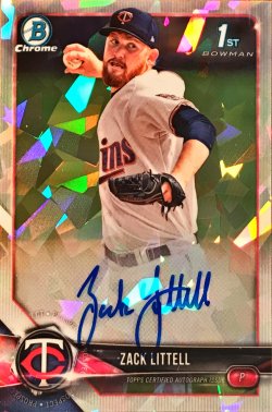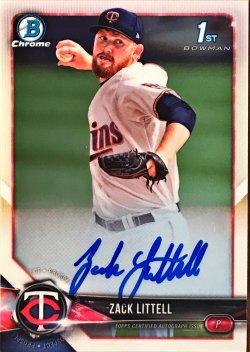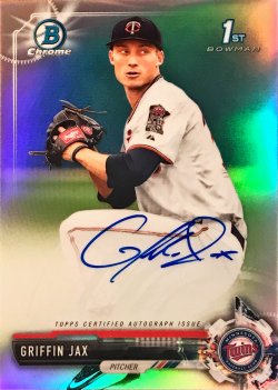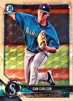 Lower end stuff (thanks to a Twins buddy for a trade after some group breaks) Enjoy picking up Kyle Gibson RC stuff when I can, here's a meh pick of a cheap gold refractor /50 Got a little caught up on some autographs. Was hoping to have more Graterol by now, but this is my first. Also shown is a Romero RC, Littell base and atomic /100, and Jax refractor /499 And lastly for now, my group break results from houdini's 10 case Draft break came in. Only one notable card, really, across all of my slots, but it was a pretty good one! Sam Carlson superfractor! Kinda funny, the only reason I bought his slot was because it was cheap and he pitched for a rival high school in my area. He unfortunately had TJ and missed all of 2018, but he started throwing again in November and should be back in action this year. He's got some nasty stuff, hoping to see him make some noise! Gonna try to post some more thoughts on my reflective statements earlier on in this thread. Things have kinda calmed down since then, but wanted to follow up at some point
