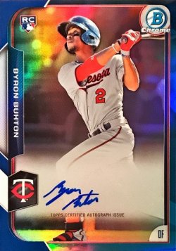 Only other card of note lately is another Buxton RC auto- grabbed my first BC RC of him 2ish weeks ago, and then I couldn't pass up a blue refractor at a fairly similar price. Really no downside here- prices are low, I've been wanting a few anyways, and the only place for him to go (both performance and prices) is up. After a 2-2 ST debut with a 3-run homer and 5 RBI, I'm starting to get my hopes up yet again ![]()