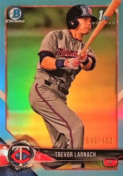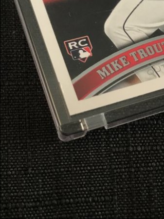 83 base 29 refractors 1 sky blue refractor /402 1 sparkles refractor The odds said I should have expected 100 base and 26 refractors including color, so I did pretty poorly with base cards but beat the odds a little bit with the refractors. Not too much luck with color, though. Best one across the 36 cases I had Larnach in was the sparkles refractor, which is unnumbered but rumored to be limited to around 200. Here's the new refractors- Next up was a pretty random cheap lot from a seller here on BO. Not really anything I'm in love with, but should be able to make a few bucks off this to help fund the addiction Plus, the seller include a couple low end Twins for my PC that I didn't have yet! Lastly, in the OP I mentioned buying a Trout RC that I didn't truly want. Well, it came in the mail. I have to say, now that it's in hand, I'm a little less upset with myself. It's a cool card, and my first Trout RC- The thing with this one is that it's damaged a little bit. Which was very clear in the listing, so no worries there. Was able to get it significantly cheaper than a clean version. But on either side near the bottom, there's some smashed edges- It'll definitely prevent this card from grading very well, but to be honest, I'm not too low about that. It's not as bad as I was expecting it to be, not as noticeable either. I might keep this one in the PC for awhile, but perhaps move on and upgrade to a cleaner copy later on. I do think it'd be fun to own a nice Trout RC just because of the player he is, but I haven't wanted to buy in at the prices he's been at. Of course, it's likely that they're only going to continue to go up, so it's kinda a catch 22. But for now, I'm cool with this imperfect card