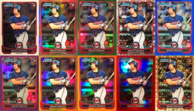 Let's get caught up a little bit, I've had some nice cards come in lately! First off, I finally put another rainbow to rest! I got a 2012 Bowman Chrome Brian Dozier Purple Refractor RC to to finish off the rainbow! This is my best and favorite completed rainbow to date. Really happy to finally have it checked off!