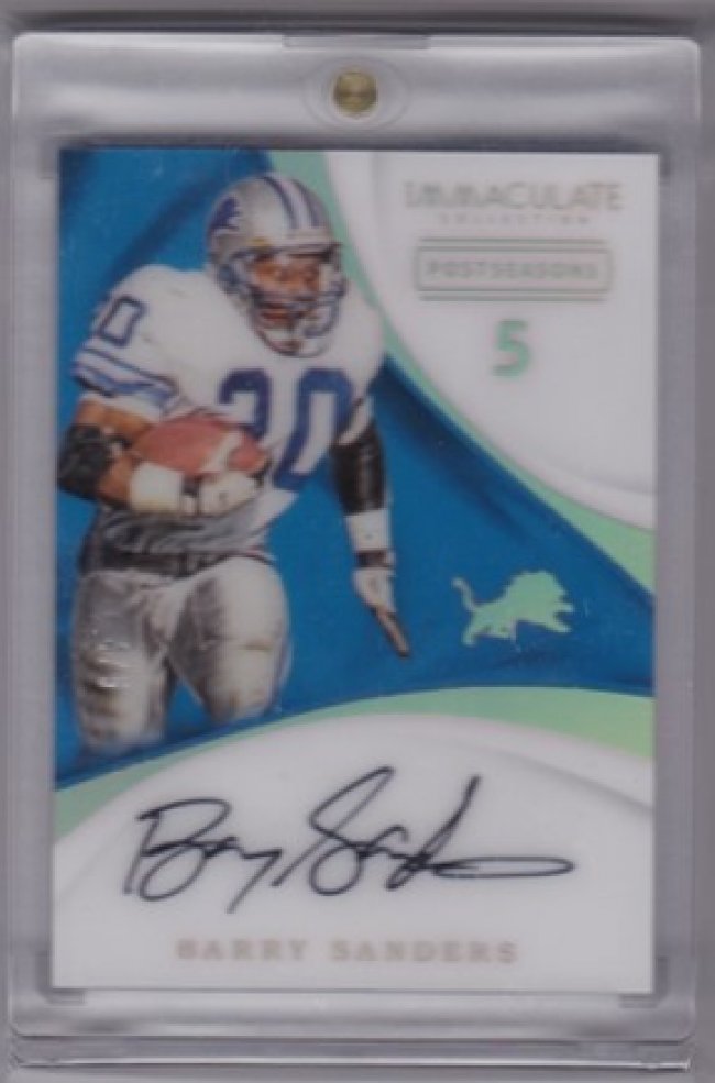 I previously posted the completed set of 2017 immaculate season subset. The following link is the link for that set. https://www.blowoutforums.com/showthread.php?t=1217219 Now i just recently completed the set of post seasons also. The Eric Dickerson took forever but after 16-months it finally came up for sale on ebay. I thought it was a gamble considering the Sterling Sharpe was a 1/1, randy moss was numbered out of 2, as was the jerry rice, but those were easier to find than the dickerson. The following are the links of the set, but was alittle disappointed that not all of them were on the card autos like the 1/1 sterling sharpe, but was to far in at that point. Either way is a nice set of 19. ![]() ![]() ![]() ![]() ![]() ![]() ![]() ![]() ![]() ![]() ![]() ![]() ![]() ![]() ![]() ![]() ![]() ![]()