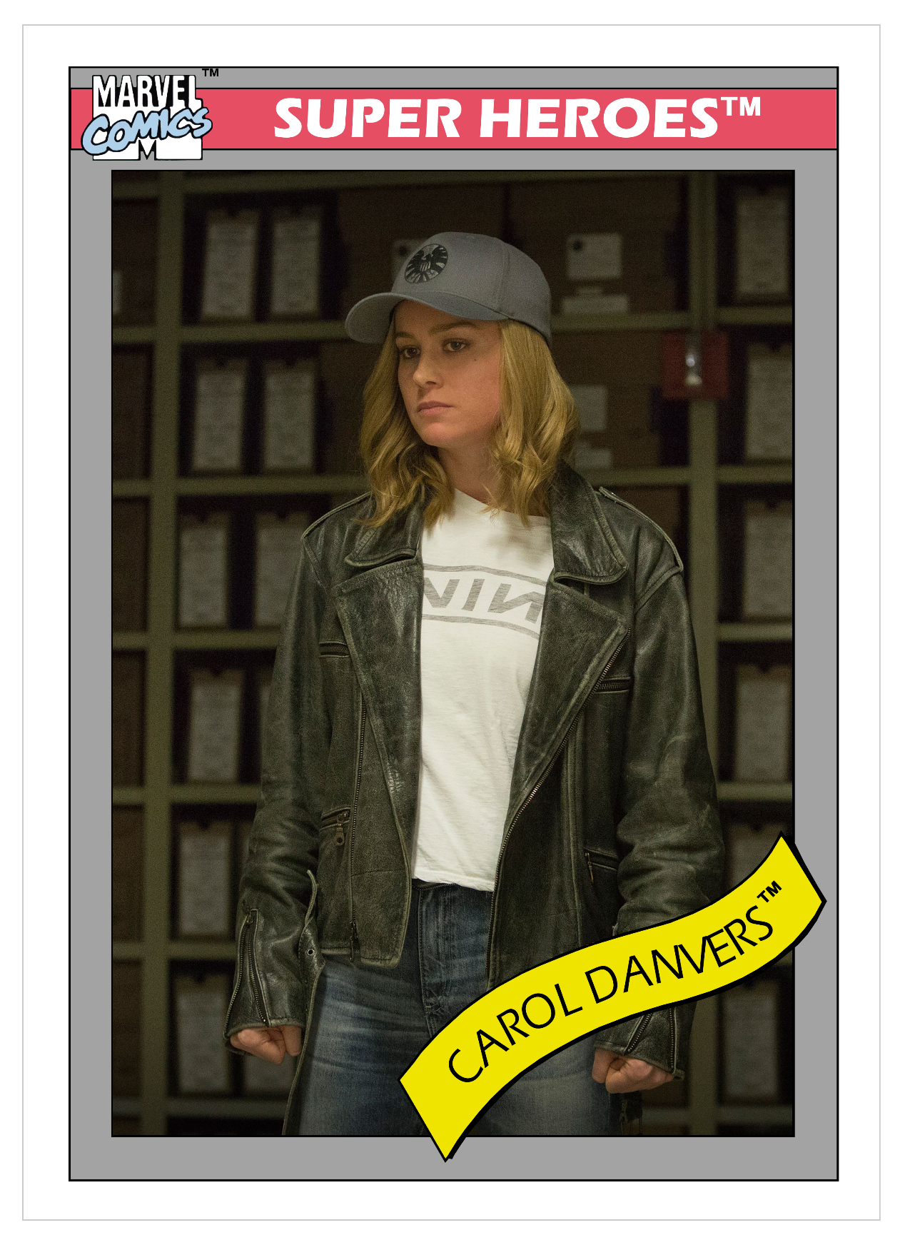 Here's some for Captain Marvel that I did tonight. One thing I really like to do is make a card for each character's various personalities... for example with Captain Marvel she has three: Kree, Human, and Superhero Human. It really expands the set.