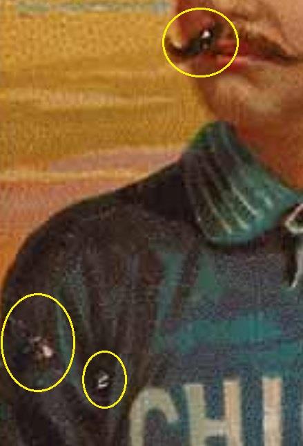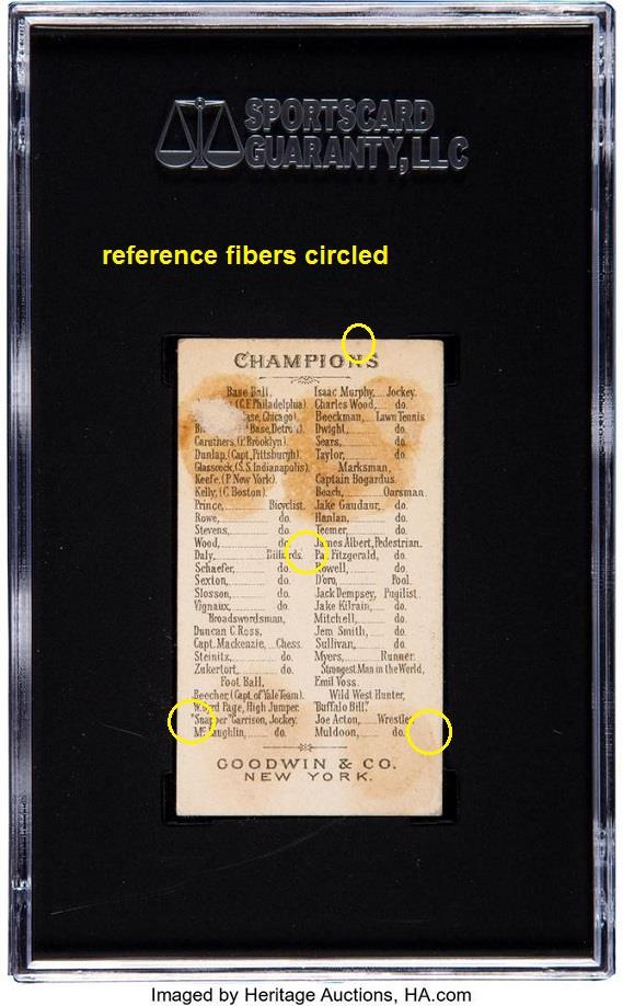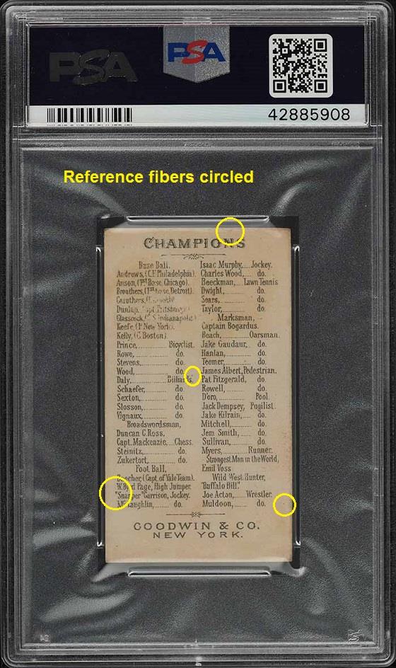 Card sold through Heritage Auction as an SGC-1.5 on Nov. 16, 2018: https://www.worthpoint.com/worthoped...son-1974243543 Same card sold on Ebay for $5,800 by PWCC as a PSA-4 on April 9, 2019: https://www.ebay.com/itm/1888-N162-G...p2047675.l2557 This card has undergone a cleaning and a color addition and should have never been graded by PSA. The alterer intentionally left white spots and added three ink spots to the upper left border in an effort to throw off researchers. Black ink would not have appeared during a cleaning but I suppose they could have occured during the color touch-up. The back has had type nearly removed from the cleaning. PSA certification number 42885908- Who was the submitter? As a PSA-4 and an SGC-1.5 - fronts: ![]() ![]() As a PSA-4 and an SGC-1.5 - backs: ![]() ![]() Closeup of areas of color additions PSA-4 ang SGC-1.5: ![]()