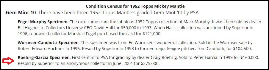 It has been rumored for many years that Roehrig altered cards and, like TripleSSS, performed some of the most advanced work. It is also known that he has had a close relationship with some of PSA's graders. His PSA 10 1952 Topps Mantle, for instance, was initially in a PSA 9 holder and may have had some "work" done to it. Great work, corndog. Yet another PSA recommended card doctor has been caught. |