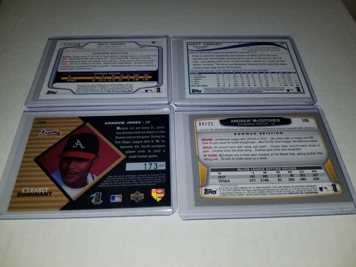 1998 Andruw Jones Clearly Dominant /250 (it still has the original removable protective peal, thus not the clearest picture). Andrew McCutchen is /25. Harevy green is /99, Gold is /2014. Whole lot is $36. Last edited by metsdotkom9; 03-08-2020 at 02:29 PM. |