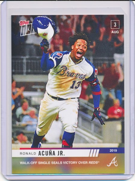 This is also my favorite Acuna Topps Now card. I just love the pictures and especially the jersey he's wearing in them.