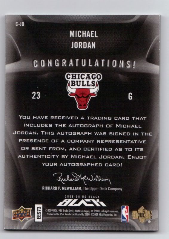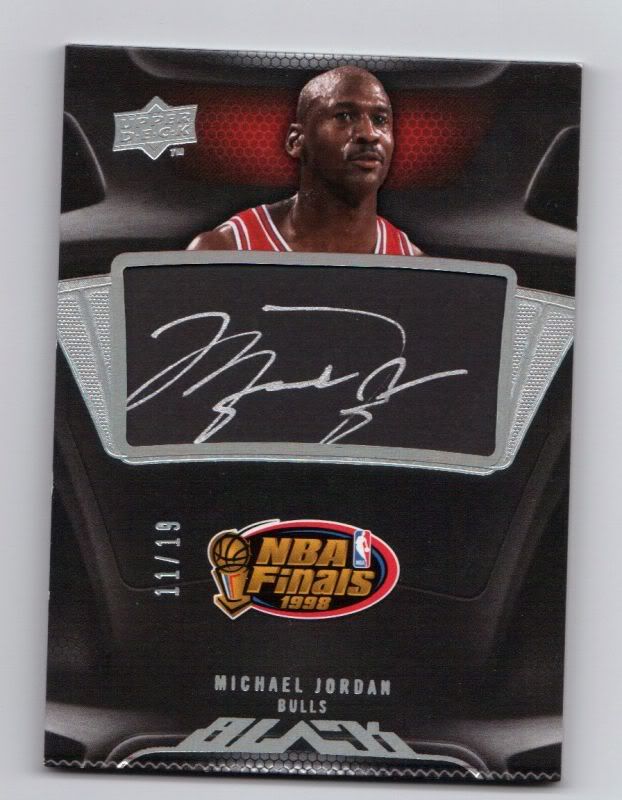 I am selling my Michael Jordan UD Black auto. This was originally posted on EBay but the buyer is from overseas and I only ship domestically. This card is in excellent condition. It is the condition you would expect from a UD Black product. See the scan for more details. *THIS CARD WAS MISPRINTED BY UPPER DECK. THE BOTTOM FRONT AND BACK SURFACE OF THE CARD HAS BUMPY RIDGES RATHER THAN A SMOOTH FINISH. IT LOOKS AS IF THIS CARD WAS NOT CUT PROPERLY ON THE ASSEMBLY LINE. SEE PICTURE FOR DETAILS. ABSOLUTELY NO RETURNS! I HAVE MADE IT PRETTY CLEAR THAT THIS CARD HAS A DEFECT. ![]() ![]() ![]() I am looking for $600 OBO. |