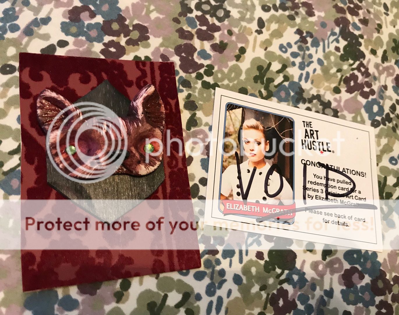 This thread’s resurrection has had me browse old scans for Art Hustle cards and I found this fun one from Series 3: Negora the Kaiju Cat by artist Konatsu ![]() Iirc the artist did multiple Negoras for the set that look much like my card. The artist’s character Negora is kind of popular and pops up in other art pieces and toys such as this one