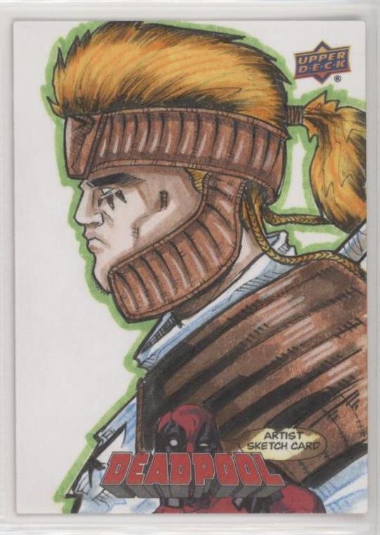 So I just traded my Keith Akers GotG2 sketch of Juggernaut for a GotG2 spiderman sketch by Estrella Rivera and this Deadpool sketch by Chris Willdig. I'm drawing a blank on just what character this is though. Was there a time when the Silver Samurai wore what looks like leather helmet/shoulders and actually had long blonde hair?