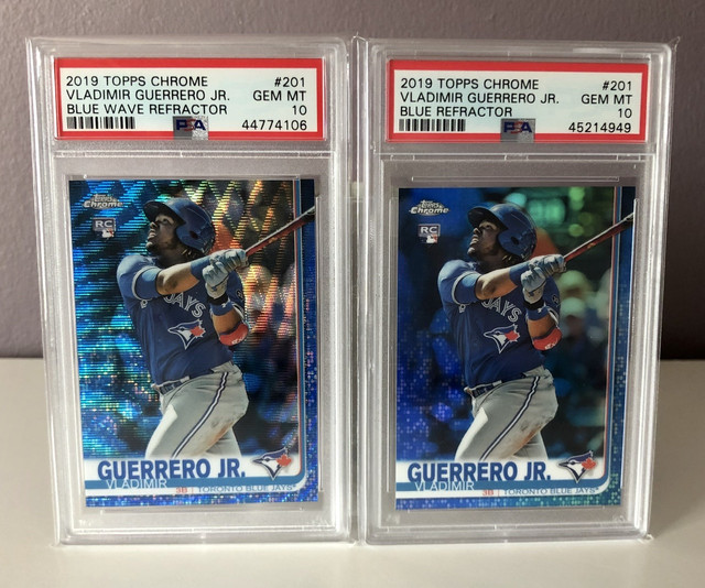 That’s a killer combo right there. Obviously it’s a natural fit between the Blue Jays and blue parallels. And there are a lot of blue parallels. But if Vlad blows up, there’s going to be a fervor for these Chrome blues—especially factoring in that they’ll be viewed as quasi-parallels to the NNO. Sent from my iPhone using Tapatalk |