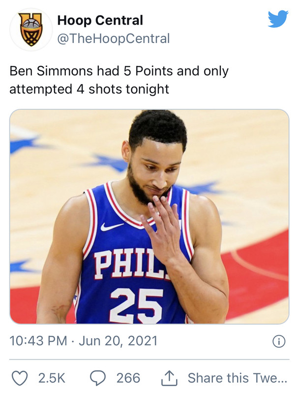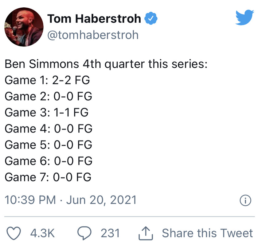 I'm seeing on Twitter Simmons took 3 shots in the 4th quarter for the entire series. He didn't even attempt a FG in the 4th quarter of the last 4 games. Is that right?