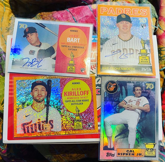 ![]() Mays /10, Jones and Acuna /50, and Soto /25 Next three haven't been as good. Highlight probably Jeter, Munson, and Arrenado variations. Autos have been Herbek X2, Logan Gilbert /50, Jose Garcia, Christian Pache. Wish I ordered more. Trying to save the last 3 for Christmas.