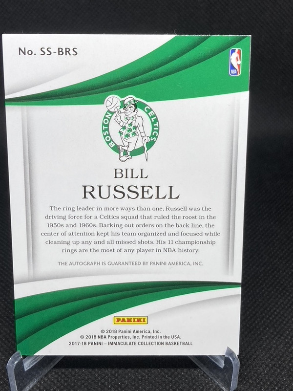 I have the following 2017-18 Immaculate Shadowbox Bill Russell Auto for sale, shipping from Hong Kong via FedEx. Serial number 6 /25, if that thing matters to you. Happy to provide more pictures on request. 2000 USD DLVD.