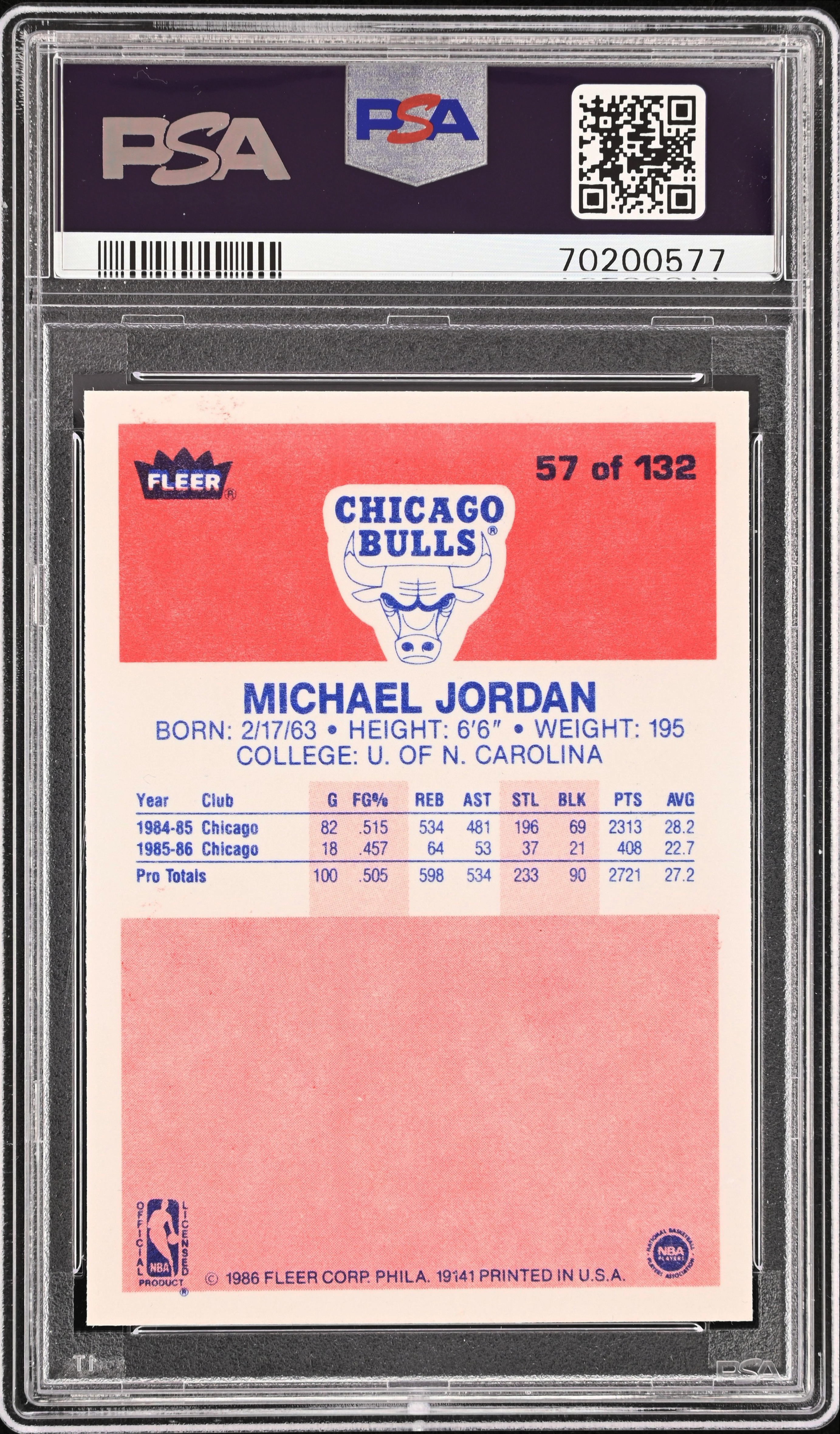 Back. Top-left, you see some red ink bleed into the white stock. But that's very minimal and overall, card is a blazer. The back has that pristine, white stock, which indicates it was never exposed to light for any sustained period of time.