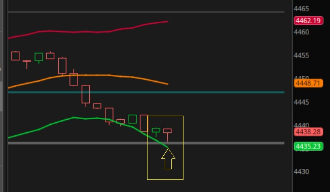 Caught it, sold around 4440 bounce. Should have grabbed Calls at 4440, but that is hindsight. Needed to trust my 4440 level better. Nice $1,200 gain.