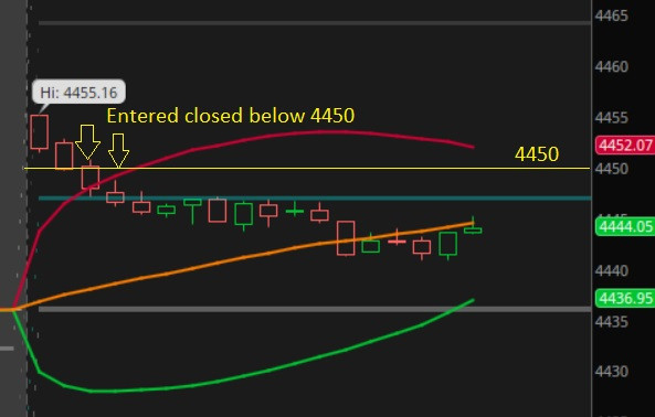 My only mistake today was going too light with both positions. 2 contracts each time, still have one runner from second 4450 P trade. Should have done my typical 3 contracts, was even thinking about changing to 4 contracts moving forward.