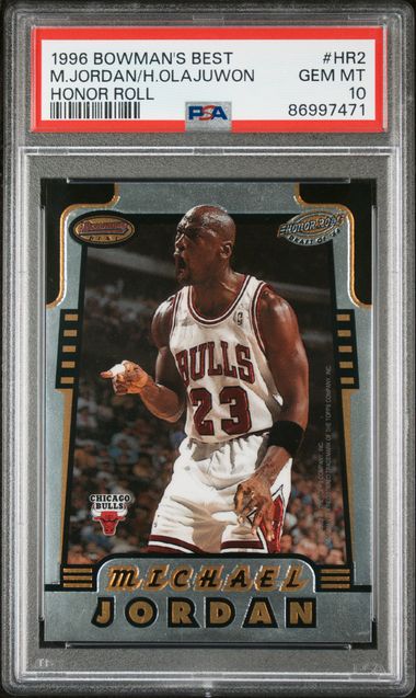I'd love some help finding a valuation on this card. I am mostly a baseball card guy but love Olajuwon and MJ, and bought this card raw in November. Thought it looked pretty good so I sent it in and it got a GEM. That's when I realized PSA 10s are only POP 13. I can't seem to find any comps of this card in this grade; there is a refractor version that goes for thousands in a high grade. I threw it up on ebay for 2k but don't mind keeping it as I love the card!