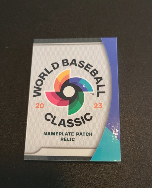 "The relic contained in this card is from a base used during the 2023 World Baseball Classic."