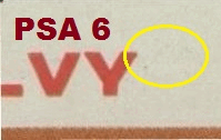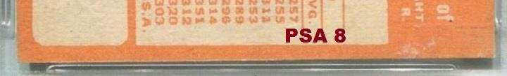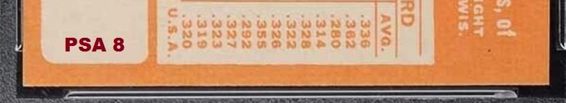 PSA Cert #27377314 1964 Topps Bob Clemente #440 Value gain of $549.50 PSA Set Registry: None found This card was purchased by VCP masked buyer ID b***b (Andy Tuttle) from Ebay seller PWCC as a PSA 6 for $138.50 on April 17, 2017. Same card was sold by Ebay seller consignmints (Andy Tuttle) as a PSA 8 for $688.00 on November 22, 2017. Yellow circles are print, fiber, or chipping identifiers. Red boxes identify trimmed right and bottom edges. ![]() ![]() ![]() ![]() ![]() ![]()