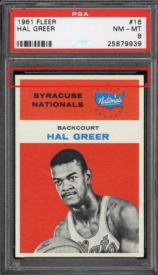 PSA Cert #25879939 1961 Fleer Hal Greer #16 Value gain of $135.73 PSA Set Registry: JayZ Basketball HOF RC'S This card was purchased by VCP masked buyer ID e***i (Andy Tuttle) from Ebay seller PWCC as a PSA 7 for $125.50 on March 15, 2016. Same card was sold by Ebay seller PWCC (via Andy Tuttle) as a PSA 8 for $261.23 on August 02, 2016. Yellow circles are print, fiber, or chipping identifiers. Red box identifies trimmed top edge. ![]() ![]() ![]() ![]() ![]()