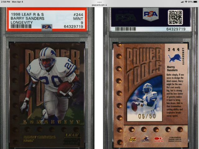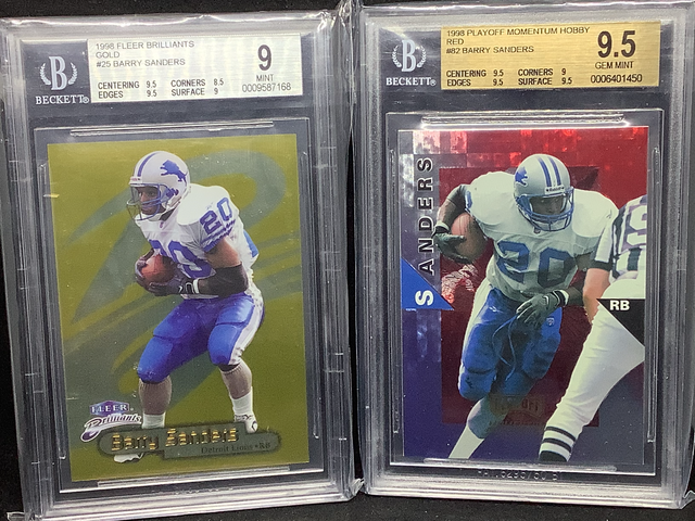 Barry Sanders 1995 Pacific Platinum Parallel PSA8 (Pop2, 2Higher) Barry Sanders 1995 Pacific Blue Parallel PSA8 (Pop1, 1Higher) $105 Dlvd for both (can send pics)